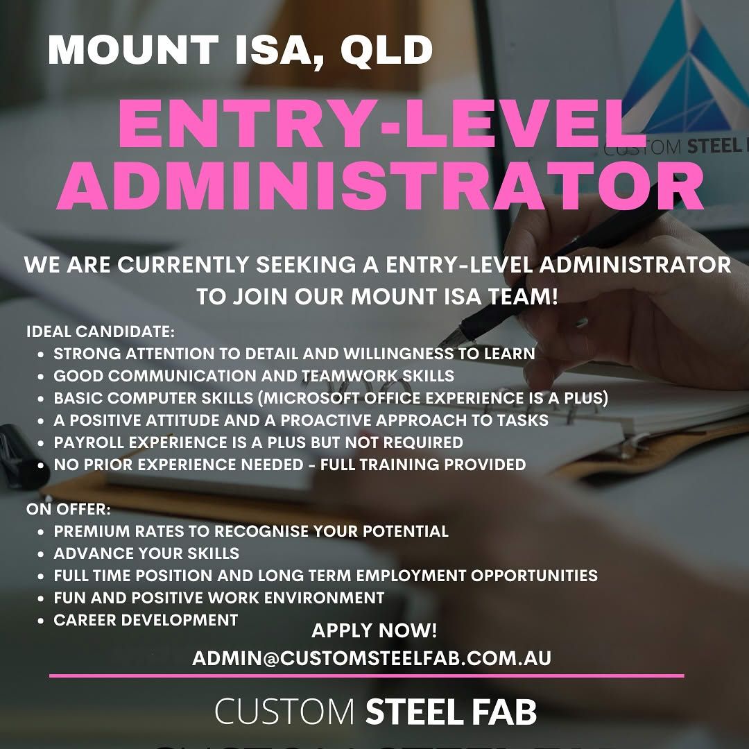 We are currently seeking an entry-level administrator to join our Mount Isa team!